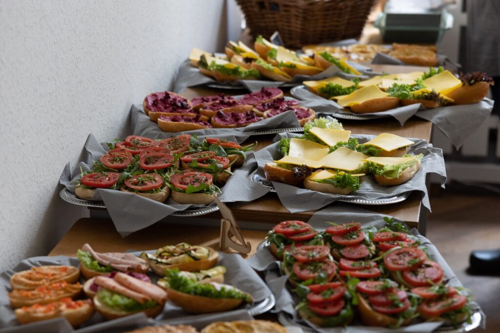 Auch bei unseren Veranstaltungen achten wir auf ökologische Nachhaltigkeit. Wir wählen Veranstaltungsorte so, dass die Erreichbarkeit mit öffentlichen Verkehrsmittel gut möglich ist. Das saisonale vegane/vegetarische Catering beauftragen wir bei regionalen Gastronomen. Bleiben Reste vom Essen über, werden diese nach der Veranstaltung an die Gäste oder über Foodsharing-Gruppen verteilt. Getränke bieten wir in Glasflaschen an – oder wir laden die Teilnehmenden ein, sich ihre Trinkflaschen mit Leitungswasser aufzufüllen. Um unnötige Spülberge zu vermeiden, ist ein „Becherparkplatz“ fester Bestandteil auf Events. Badges und Plakate lassen wir bevorzugt bei regionalen Anbietern produzieren und achten bei diesen Druckerzeugnissen auf Nachhaltigkeitsstandards (z.B. blauer Engel). Bei Rollups bevorzugen wir wiederverwendbare Kassetten. Wir verzichten auf den Einsatz von gedruckten Programmen/Tagesordnungen und stellen wichtige Informationen lieber digital zur Verfügung. Auch Tickets müssen bei uns nicht ausgedruckt mitgebracht werden. Wir bitten nach dem Event um Rückgabe der Lanyards, um diese weiterverwenden zu können.